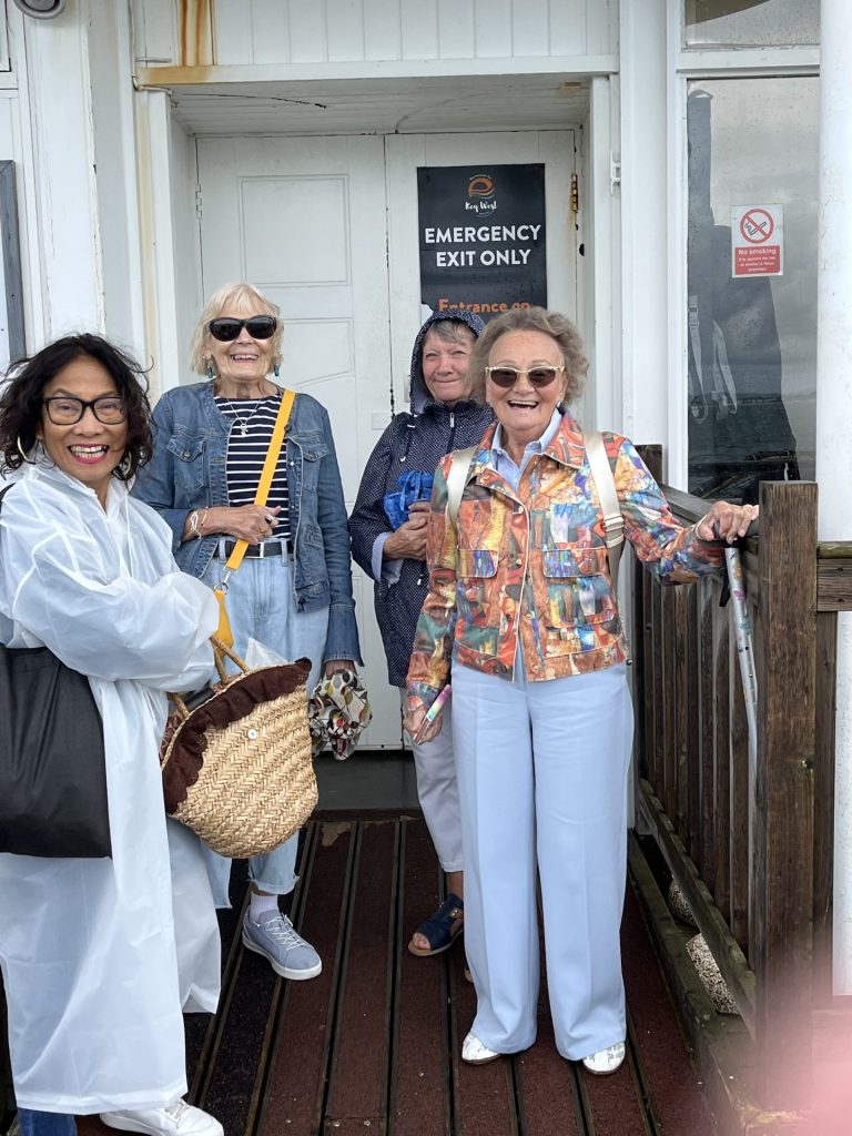 The sea was rough; several people were in the water, but lifeguards were doing their best to keep everyone on the beach. The zip wire was in continual use. One of our group was brave enough to have a paddle, apparently the water was quite warm. A large number visited the Rusell-Cotes Museum where they spent several hours.